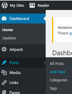 First, open the WordPress dashboard, then go down in the left-hand side menu, click posts.