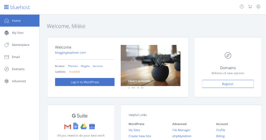 let’s now jump in the control panel and show you in details How to start WordPress Blog on Bluehost.