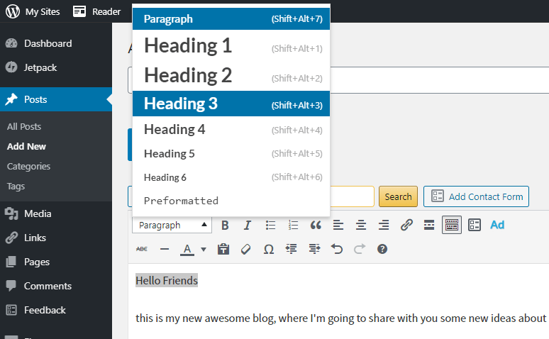 By using the WordPress blog post editor, you can format and style your text by using some easy tools.