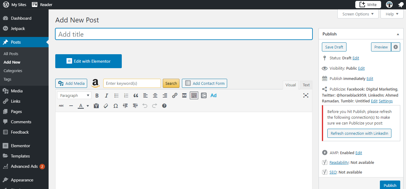 Add your blog post title inside the “Add title” space, try to choose a catchy title that your visitors love and make them motivated to click and read.
