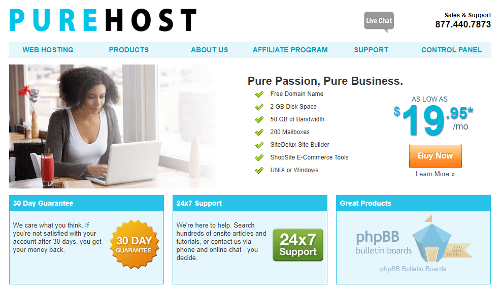 When you open Purehost.com and land on the website front page you feel like you go back to 2000.